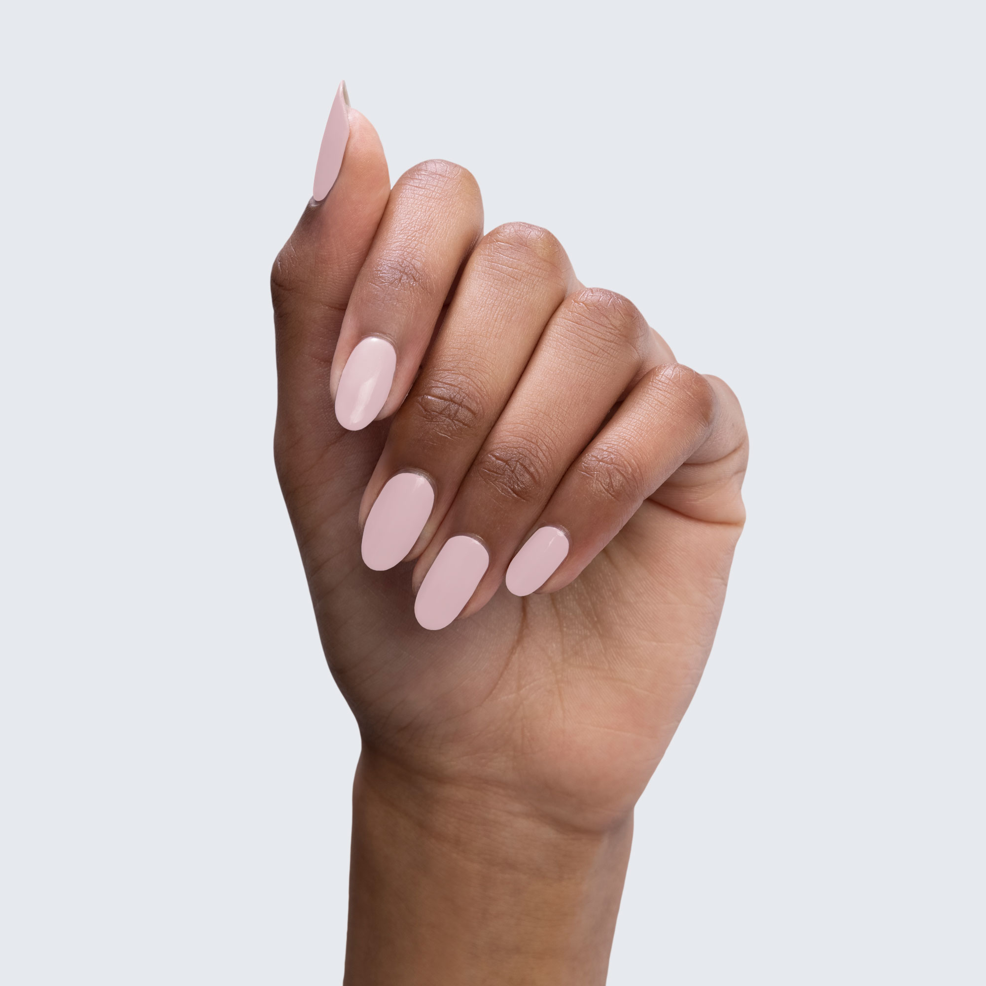 Dusty pink. Light. Muted. Opaque. Warm undertone.