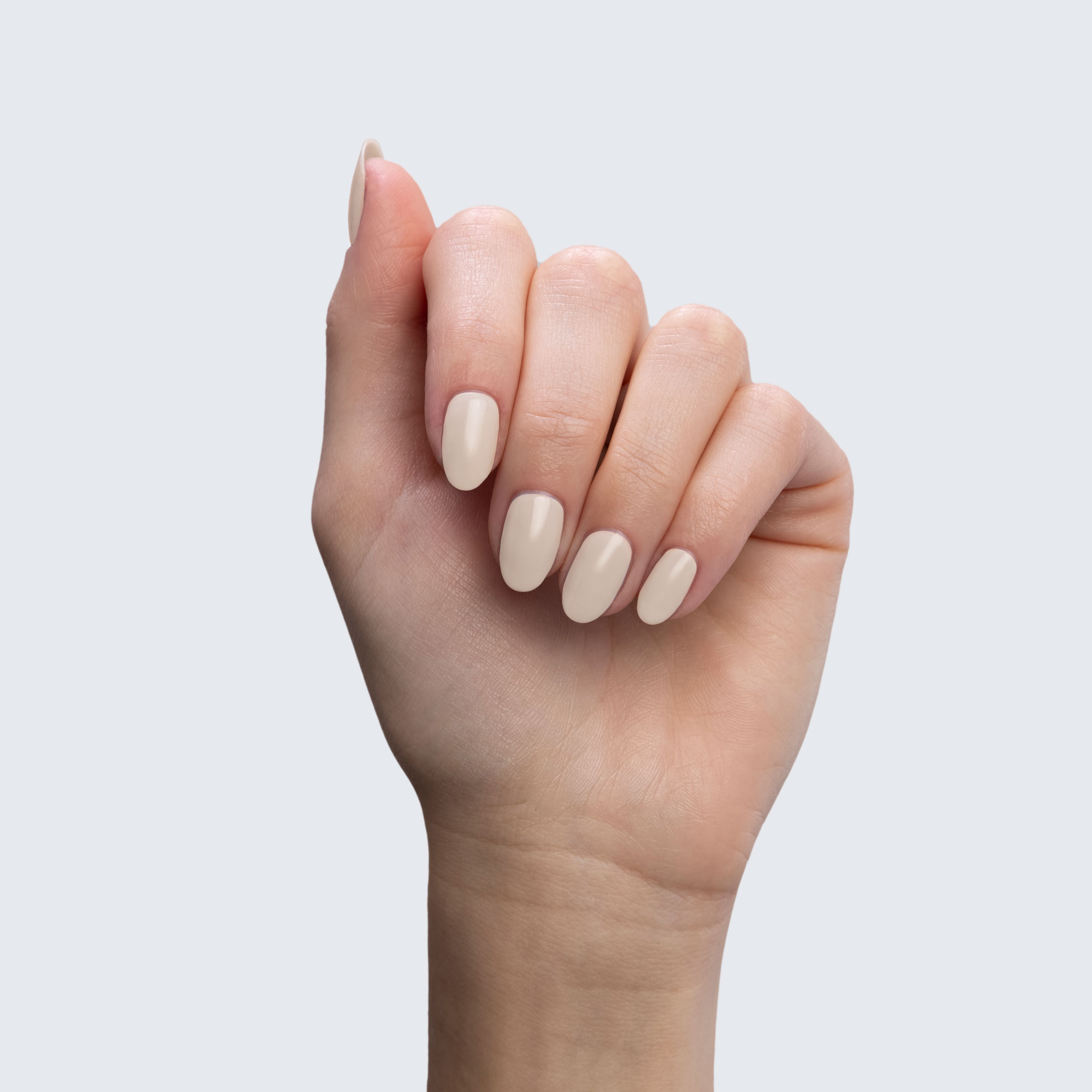 Beige. Pale. Nude/muted. Opaque. Warm undertone.